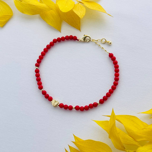 Радуга Самоцветов Браслет из красного Коралла со вставкой "Сердце"