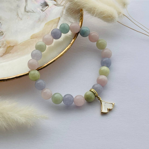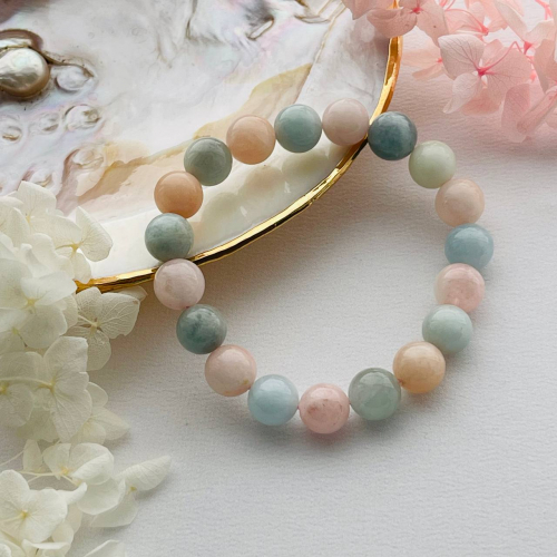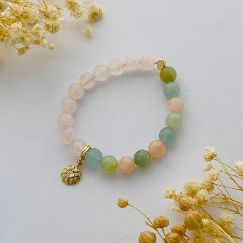 Радуга Самоцветов Браслет из Розового кварца и Берилла микс с подвеской