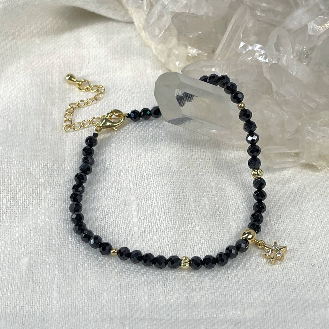 Радуга Самоцветов Браслет из черной Шпинели с подвеской