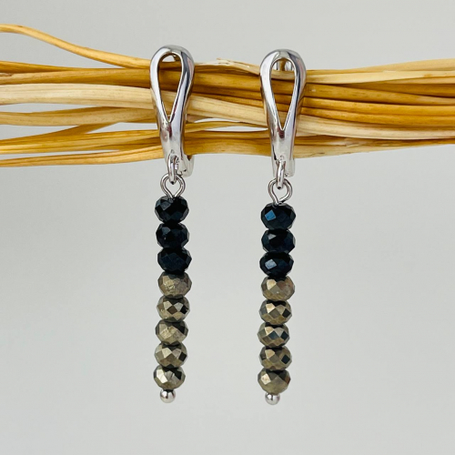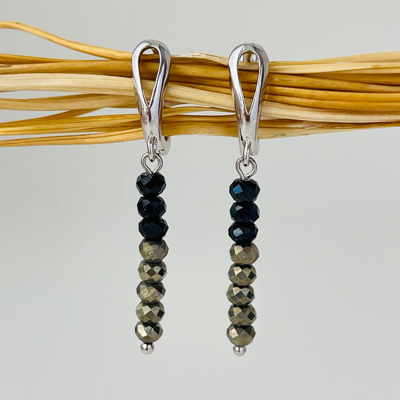 Радуга Самоцветов Серьги длинные из Шпинели и Пирита