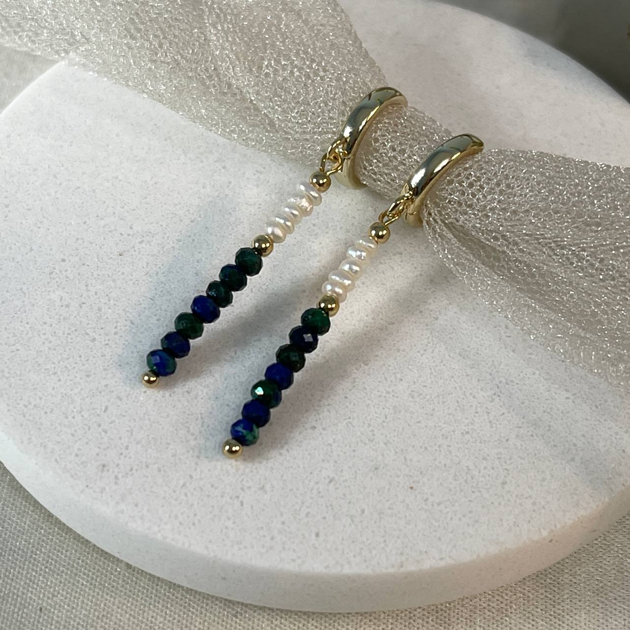 Радуга Самоцветов Серьги длинные из Азурита и Жемчуга