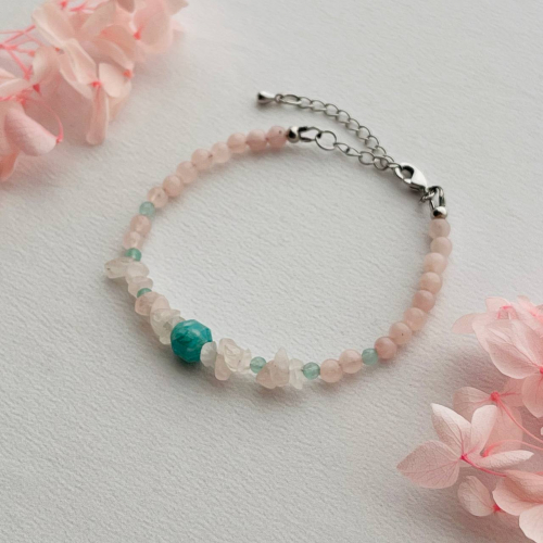 Радуга Самоцветов Браслет из Розового кварца и Амазонита