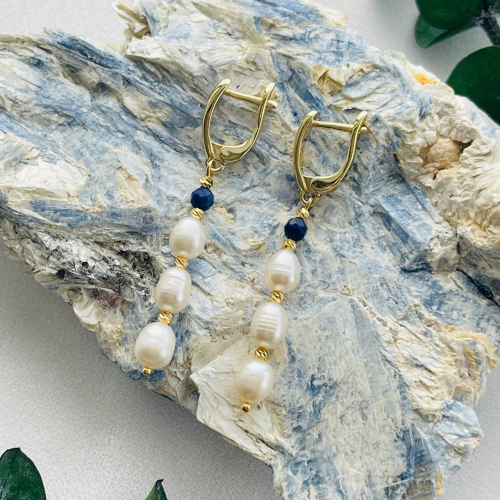 Радуга Самоцветов Серьги из Жемчуга и Содалита
