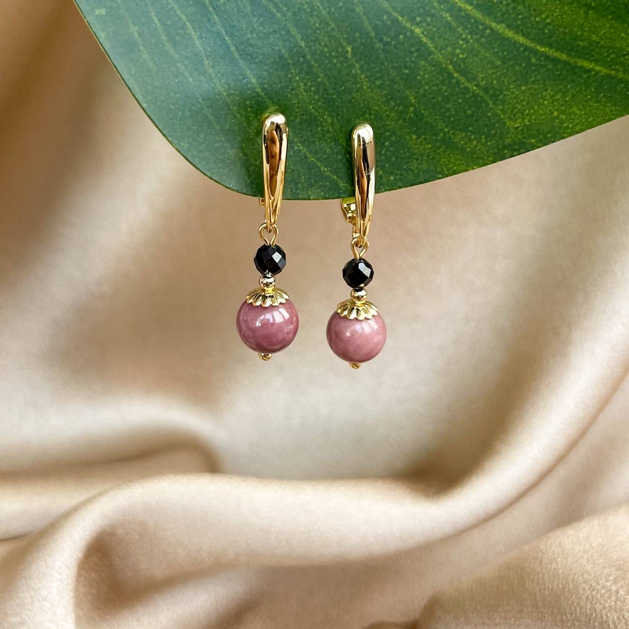 Радуга Самоцветов Серьги из Родонита и Шпинели