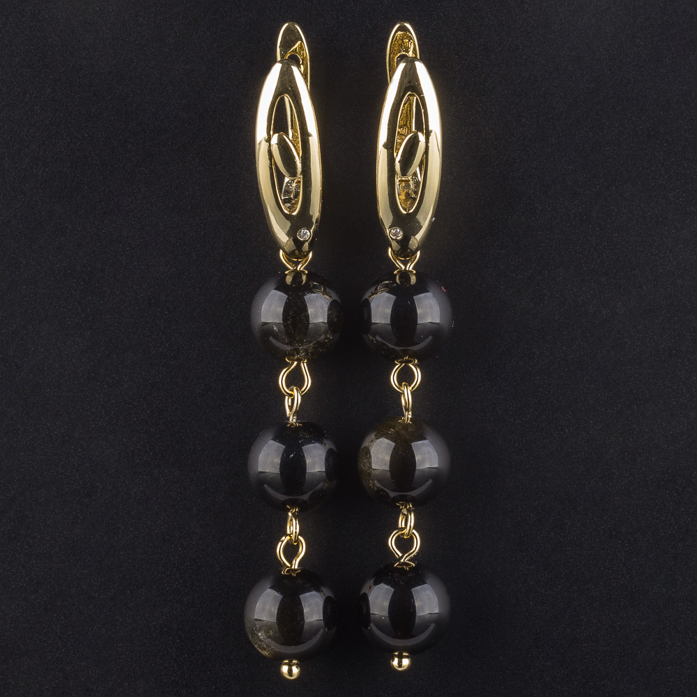 Радуга Самоцветов Серьги тройные из Обсидиана золотистого