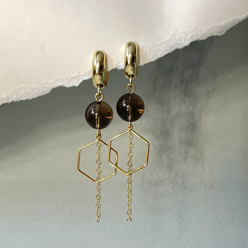 Радуга Самоцветов Серьги с цепочкой из Раухтопаза