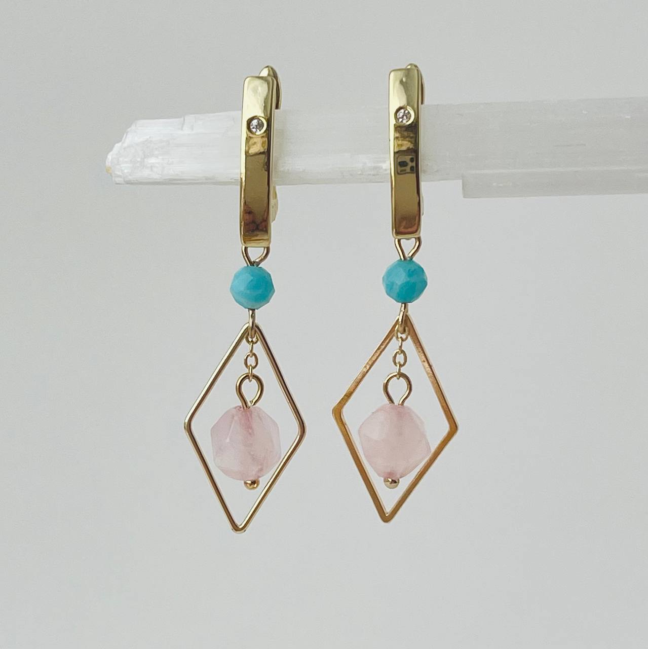 Радуга Самоцветов Серьги из Розового кварца и Амазонита