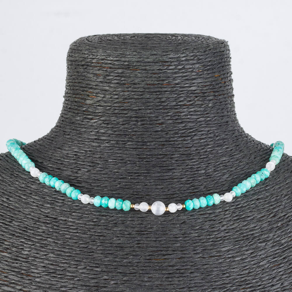 Радуга Самоцветов Бусы из Амазонита и Селенита