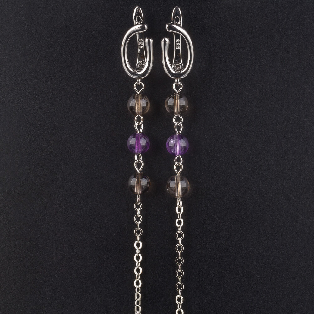 Радуга Самоцветов Серьги длинные из Раухтопаза с Аметистом