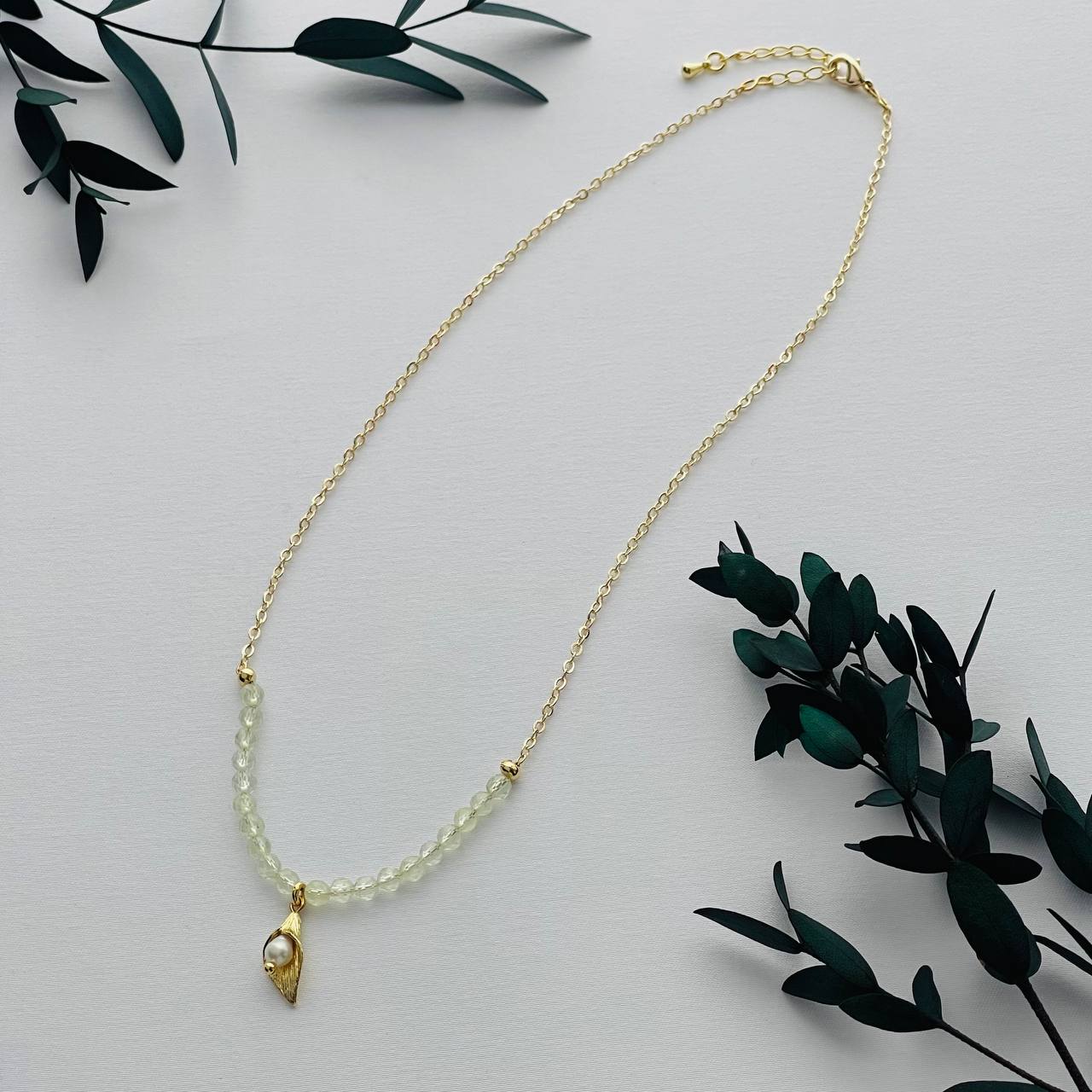 Радуга Самоцветов Колье на цепочке из Пренита с подвеской