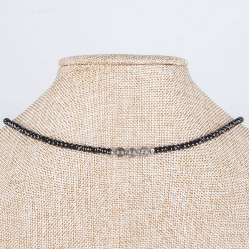 Радуга Самоцветов Бусы из черной Шпинели и Кварца с Турмалином