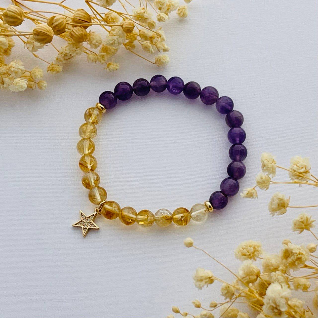Радуга Самоцветов Браслет из Аметиста и Цитрина с подвеской "Звезда"