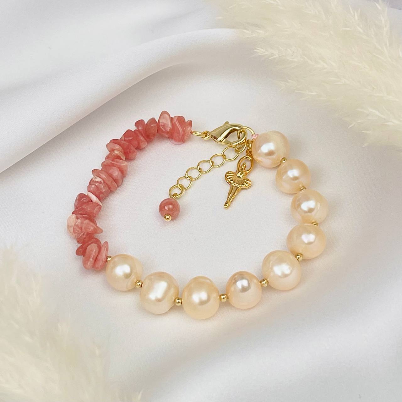 Радуга Самоцветов Браслет из Жемчуга и Родохрозита