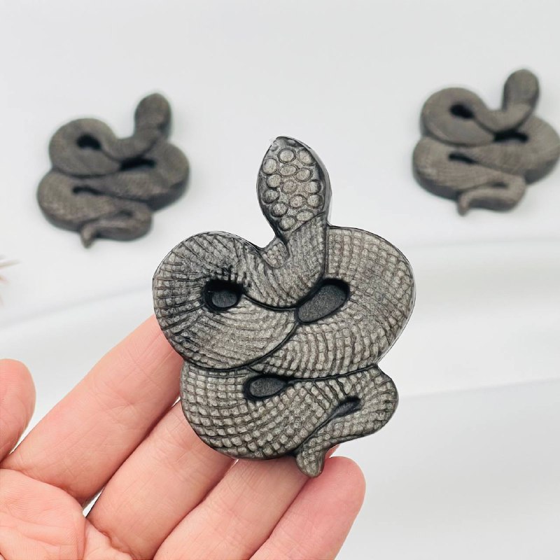 Радуга Самоцветов Фигурка "Змея" из серебристого Обсидиана