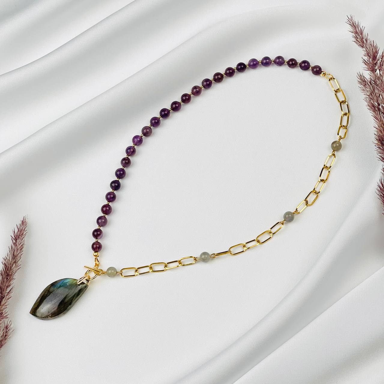 Радуга Самоцветов Колье из Аметиста и Лабрадора с цепочкой