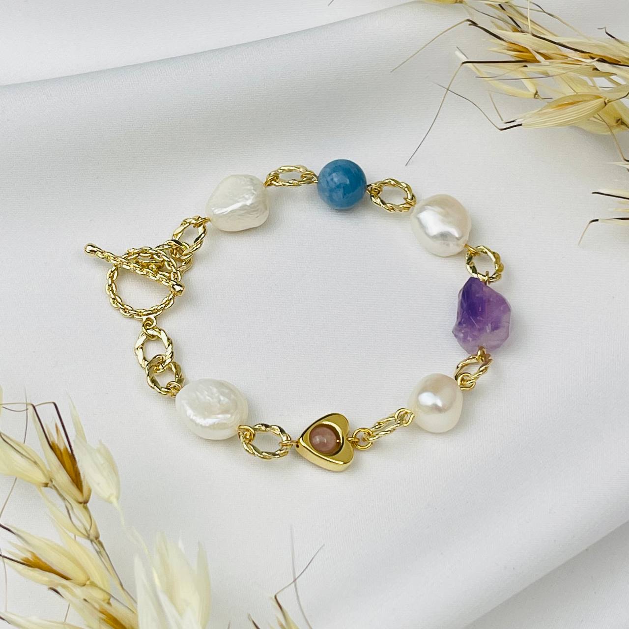 Радуга Самоцветов Браслет из Жемчуга,Аметиста,Аквамарина и Розового кварца