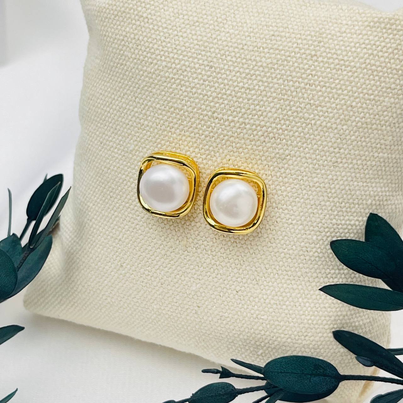 Радуга Самоцветов Серьги-пусеты из речного белого Жемчуга