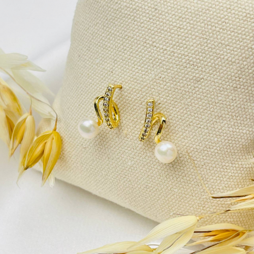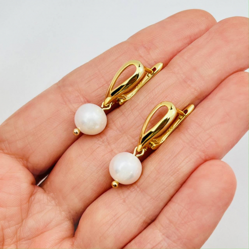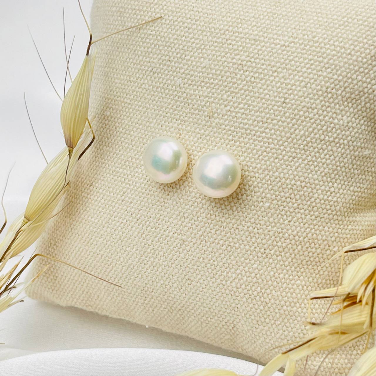 Радуга Самоцветов Серьги-пусеты из речного белого Жемчуга