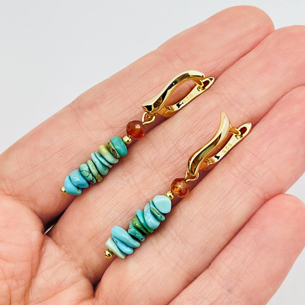 Радуга Самоцветов Серьги из Бирюзы и Граната "Спессартин"