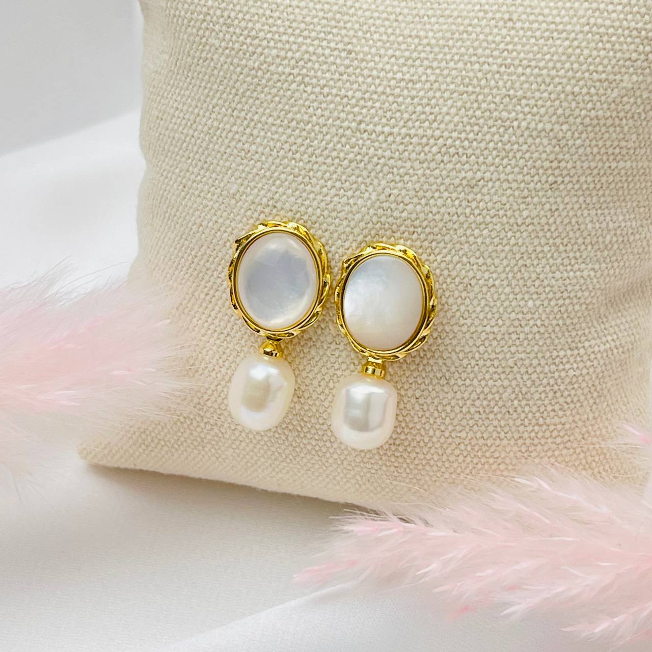 Радуга Самоцветов Серьги-пусеты из речного Жемчуга и Перламутра