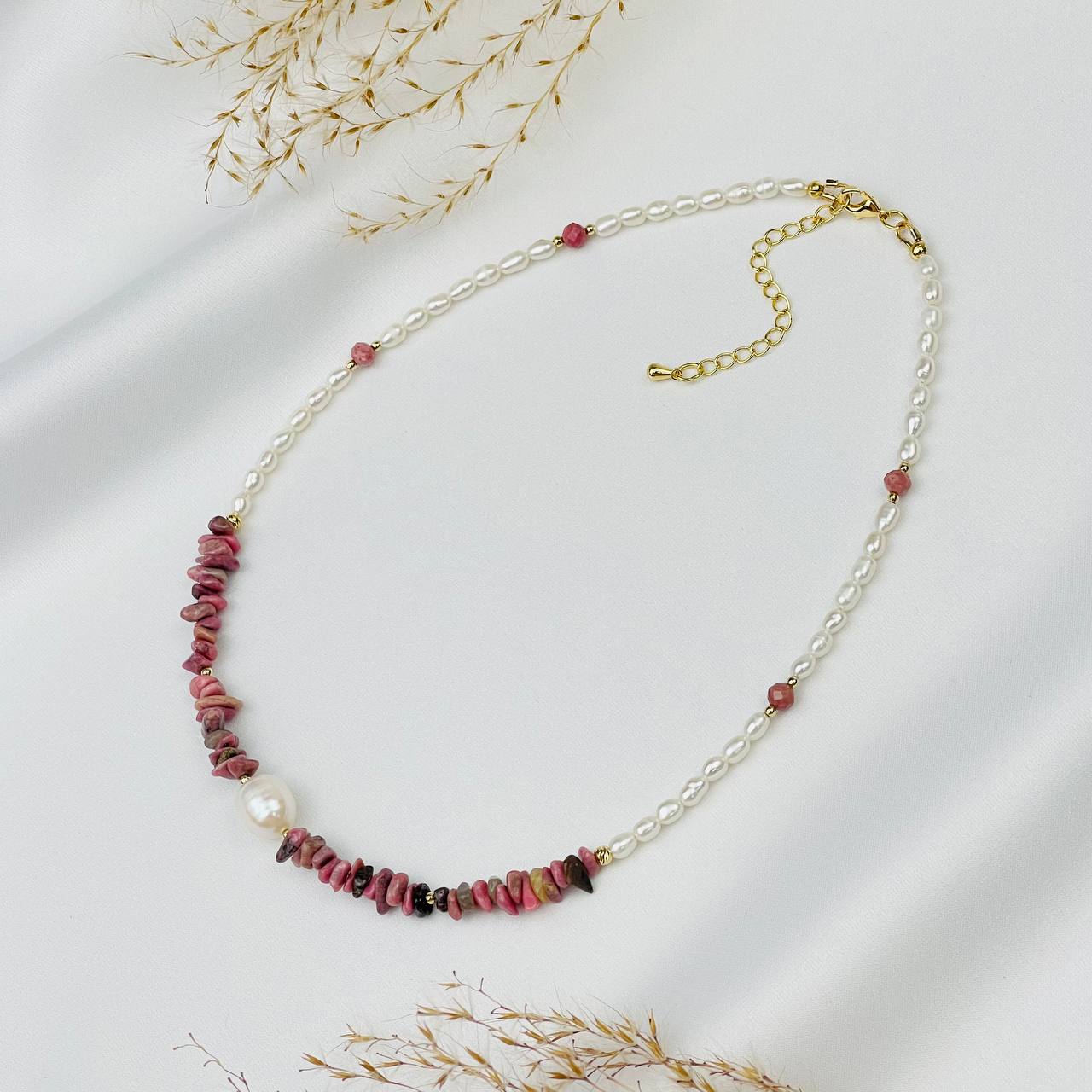 Радуга Самоцветов Чокер из Жемчуга и Родонита