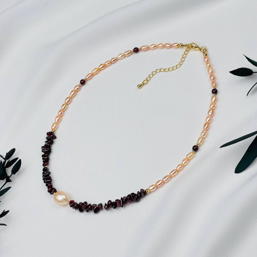 Радуга Самоцветов Чокер из речного Жемчуга и Граната