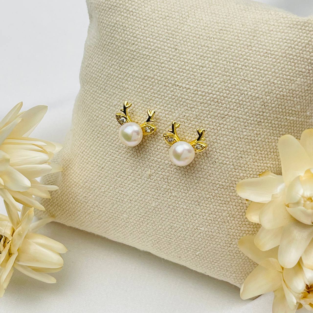 Радуга Самоцветов Серьги-пусеты из речного белого Жемчуга