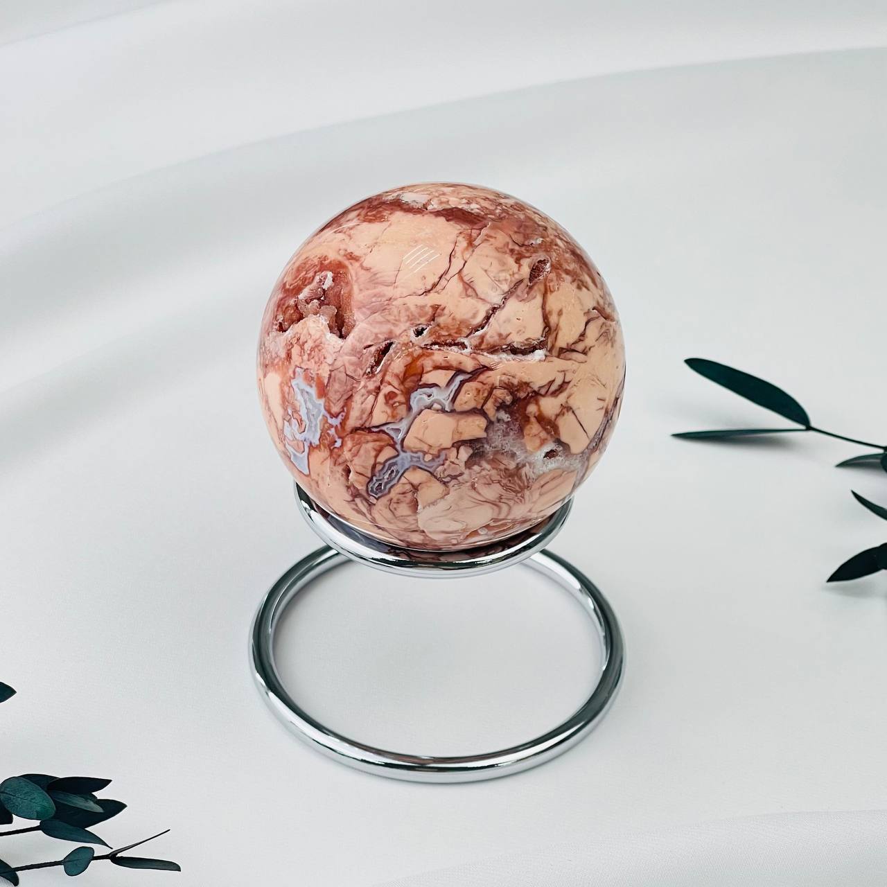 Радуга Самоцветов Шар из цветочного Агата на подставке