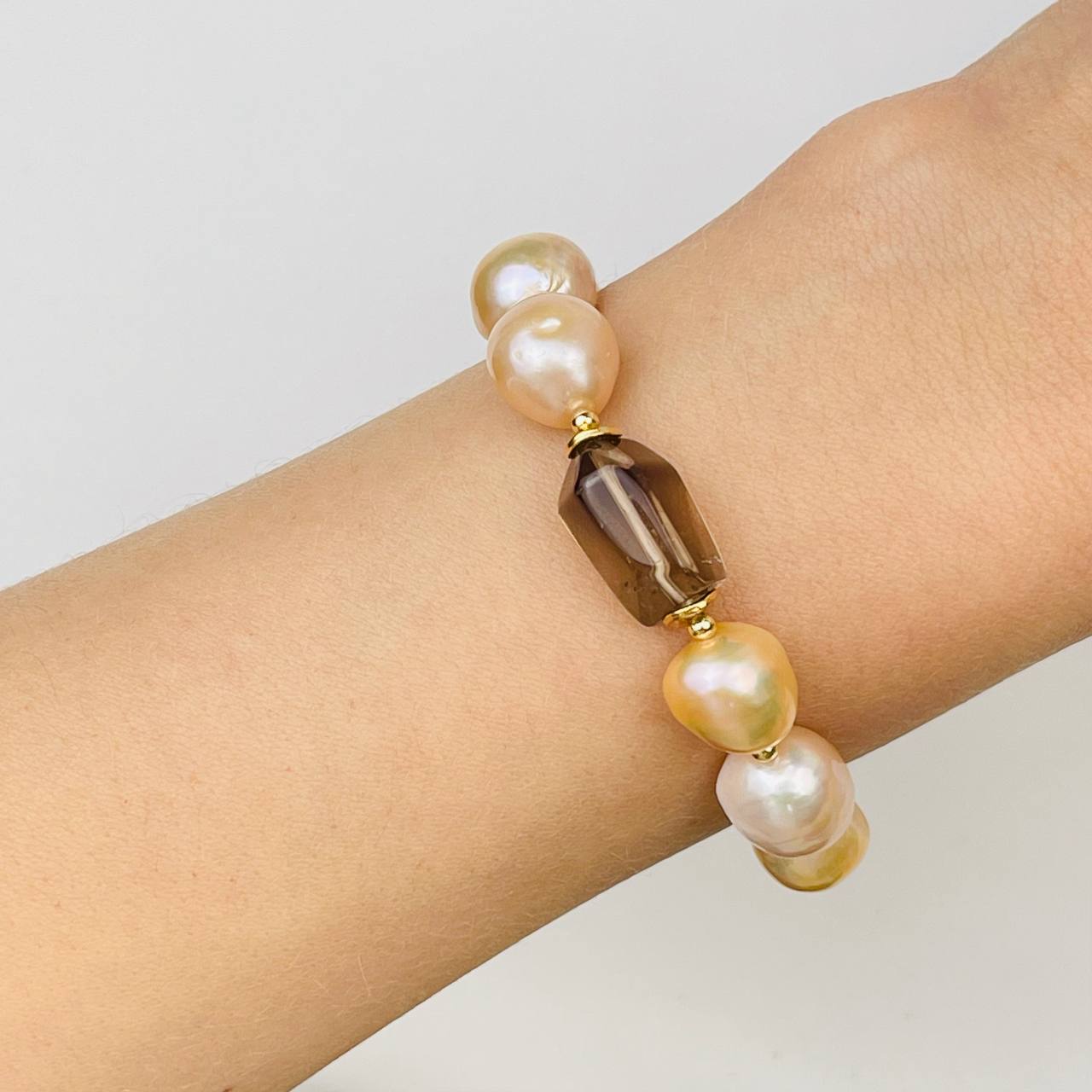 Радуга Самоцветов Браслет из Жемчуга и Раухтопаза