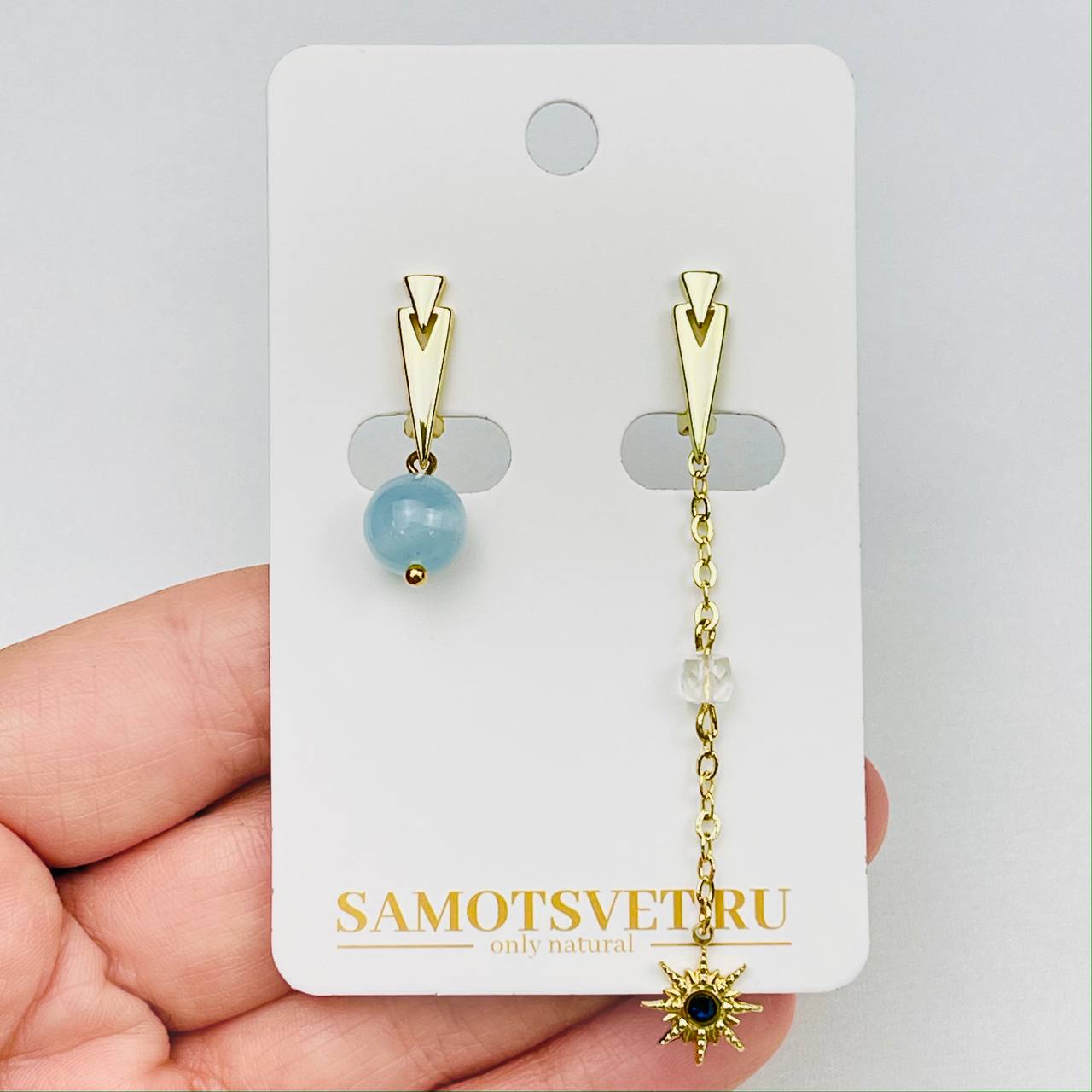 Радуга Самоцветов Серьги из Аквамарина и Горного Хрусталя