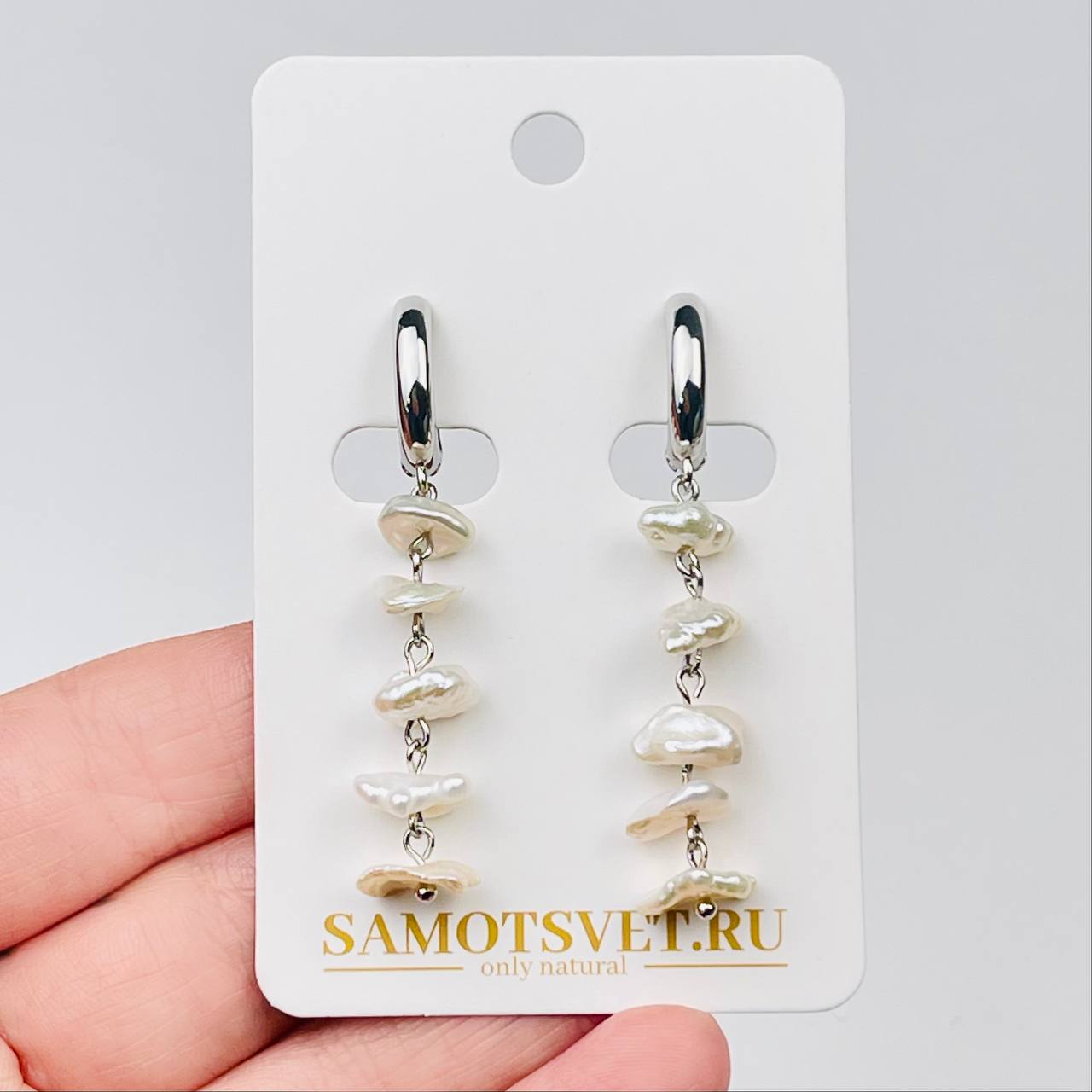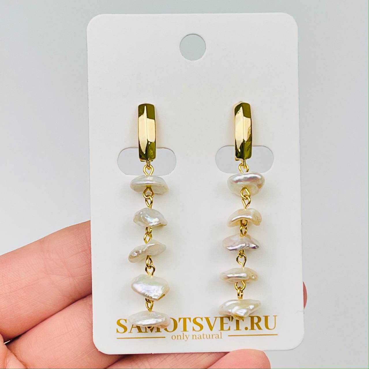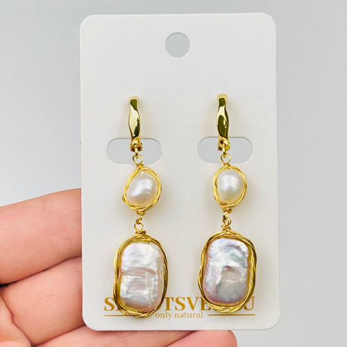 Радуга Самоцветов Серьги длинные из Жемчуга