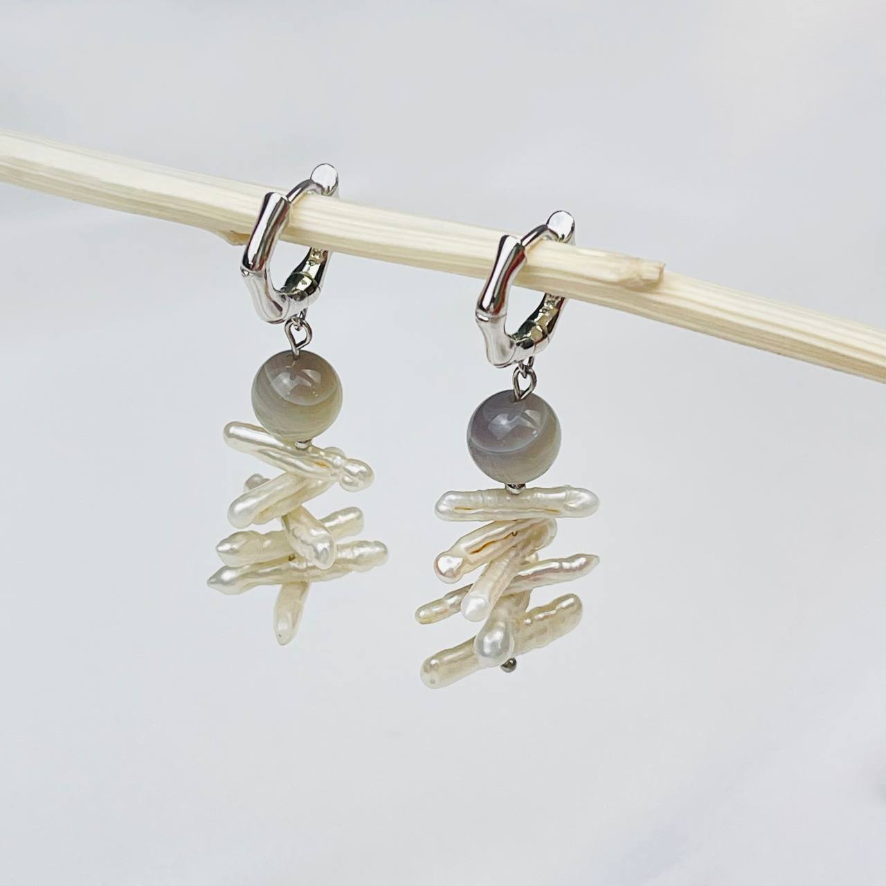 Радуга Самоцветов Серьги Жемчуга и ботсванского Агата