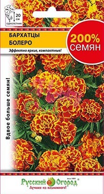 Цветы Бархатцы Болеро смесь (0,6 г) Русский Огород серия 200%