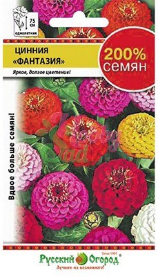 Цветы Цинния Фантазия смесь (0,6 г) Русский Огород серия 200%