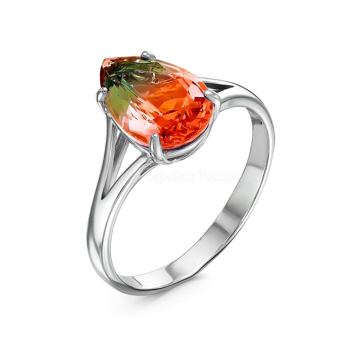 Кольцо из серебра с полихромным пл.кварцем цв.оранжево-оливковый родированное