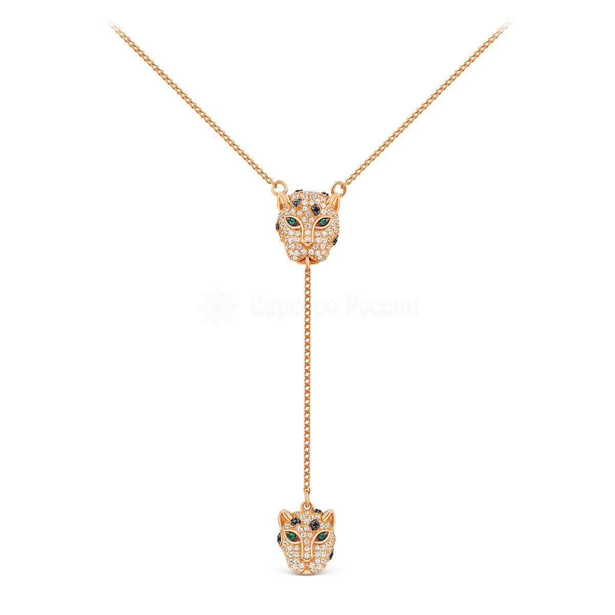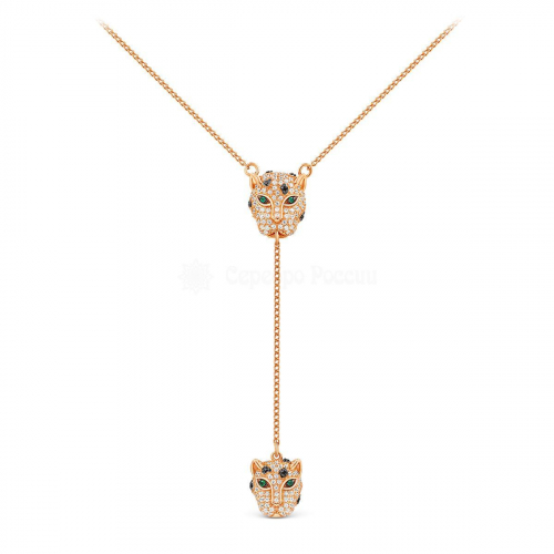 Колье из золочёного серебра с нат.изумрудом, нат.шпинелью и фианитами