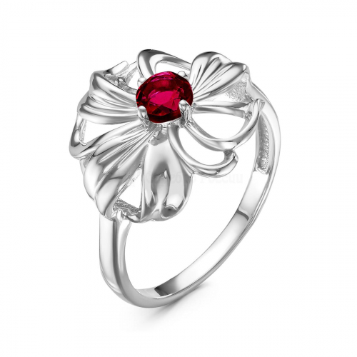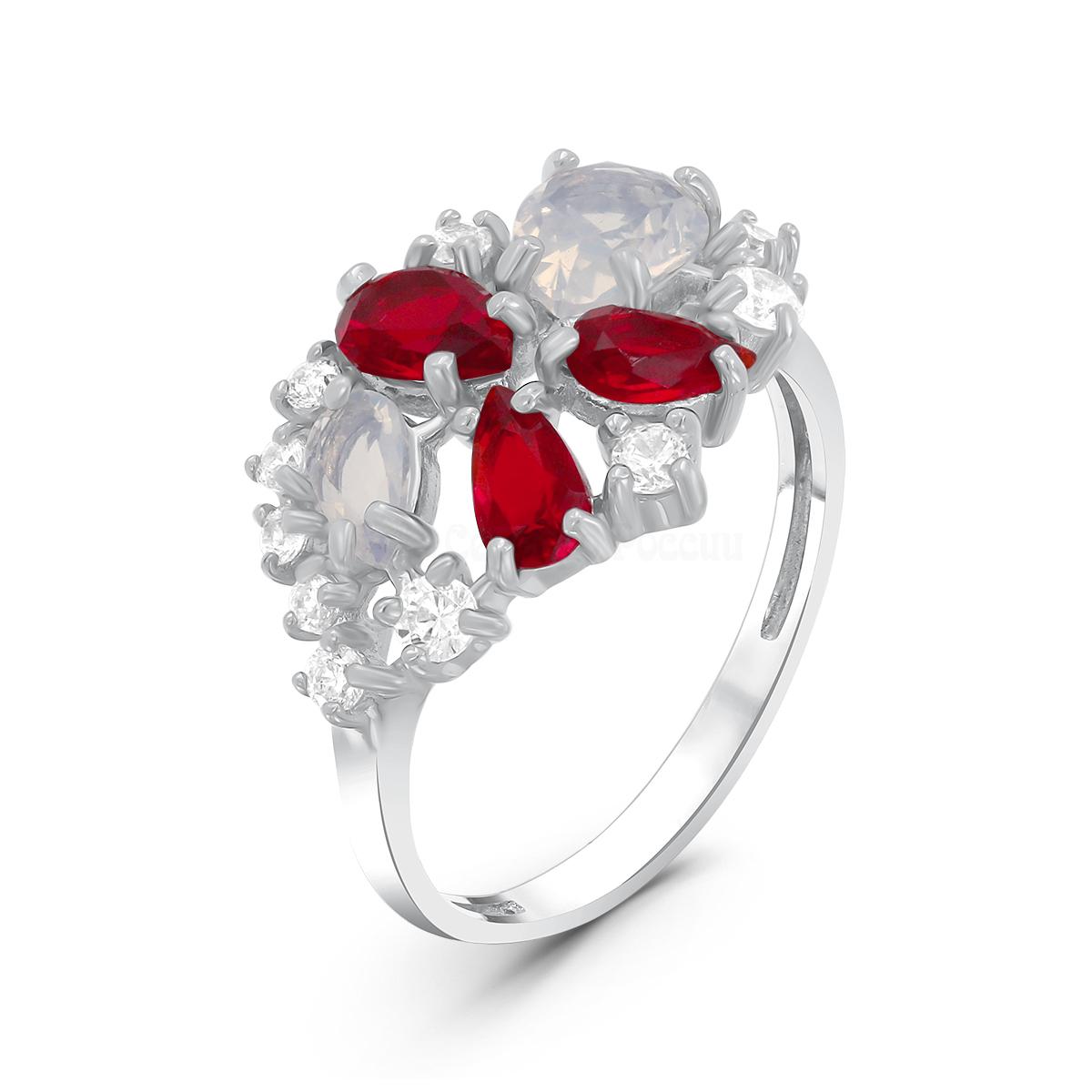 Кольцо из серебра с пл. кварцем цв. лунный камень, цв. гранат и фианитами родированное