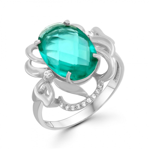 Кольцо из серебра с пл. кварцем и фианитами родированное