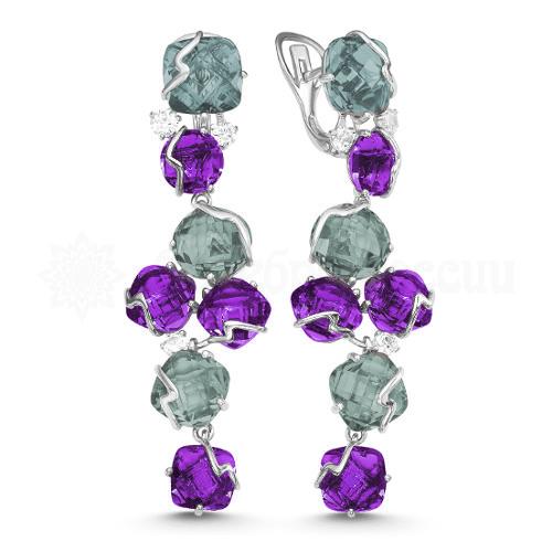 Серьги из серебра с пл.кварцами и фианитами родированные