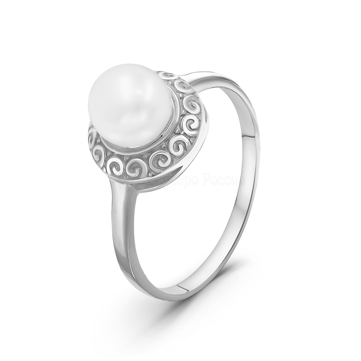 Кольцо из серебра с культ.жемчугом родированное