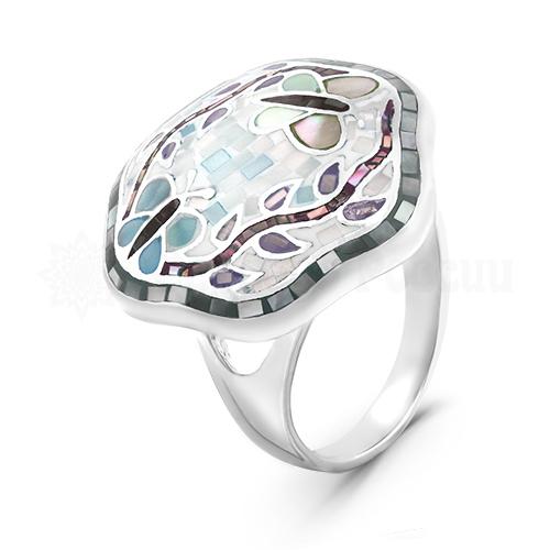 Кольцо из серебра с перламутром и эмалью родированное