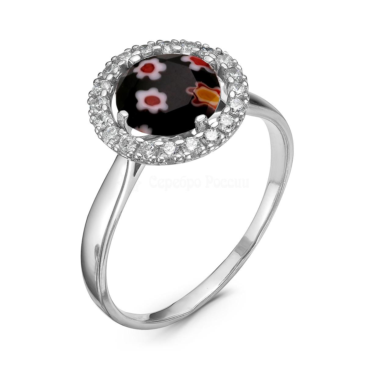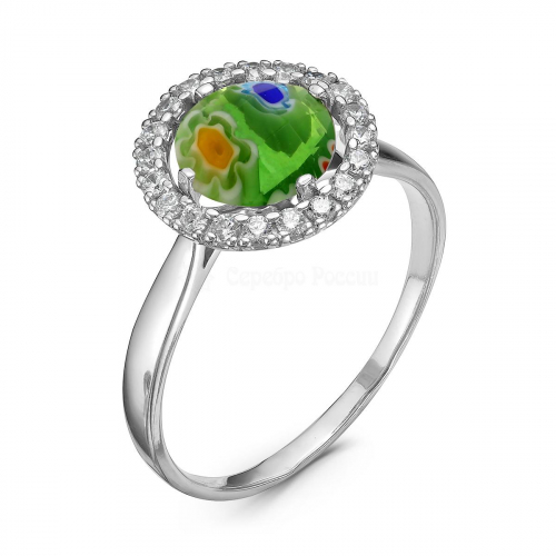 Кольцо из серебра с муранским стеклом и фианитами родированное
