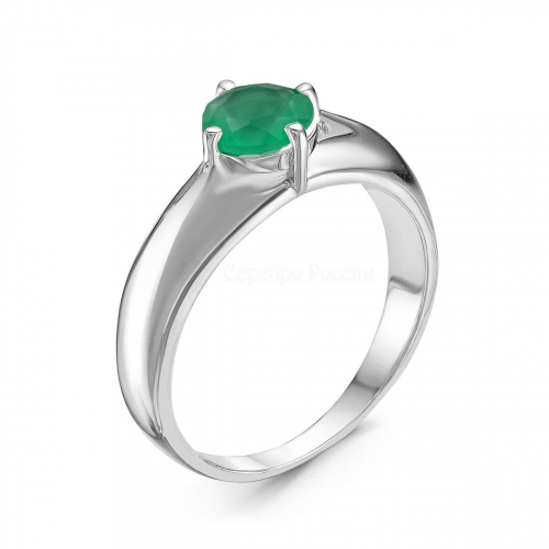 Кольцо из серебра с пл.кварцем цв.зелёный агат родированное