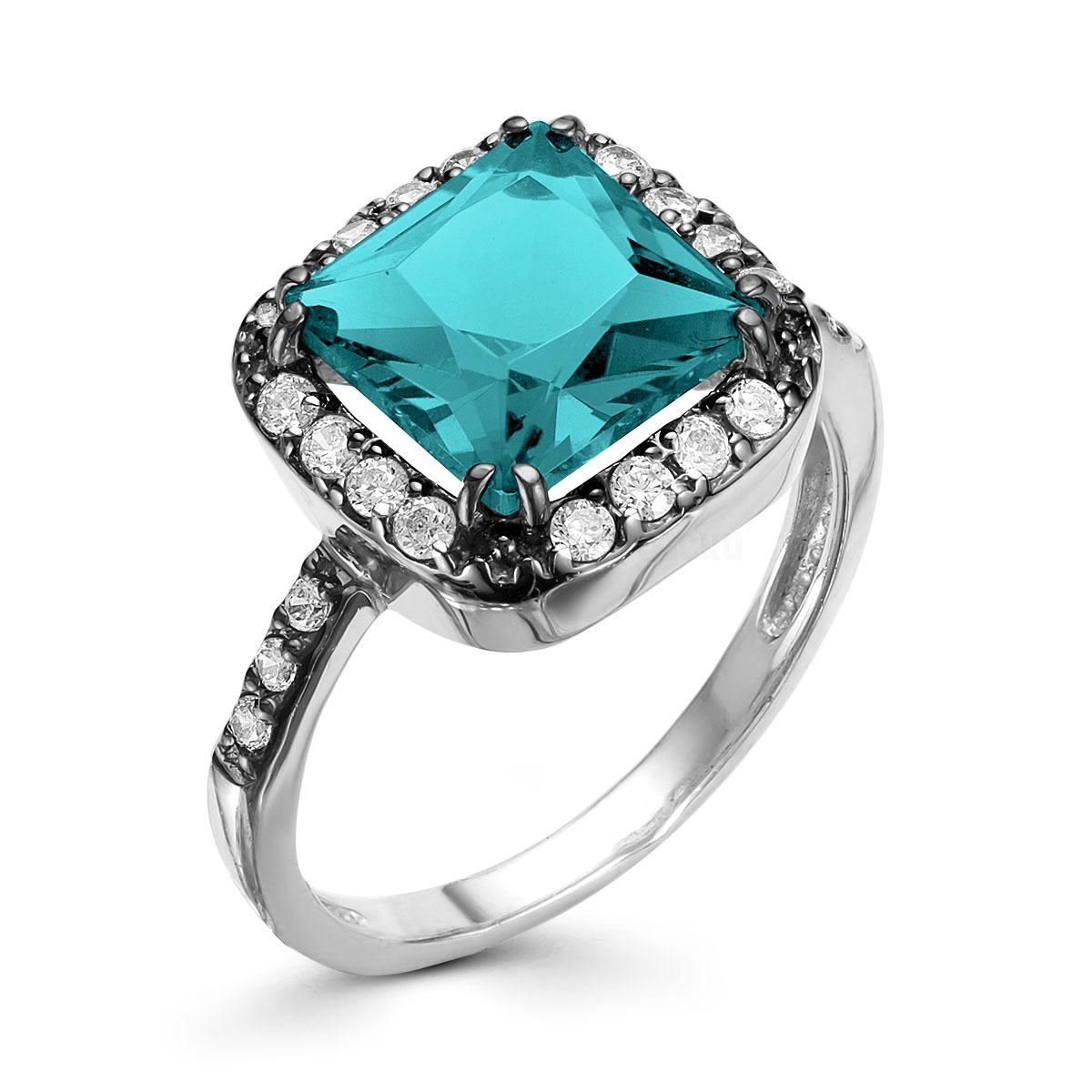 Кольцо из серебра с эмалью и куб.цирконием родированное