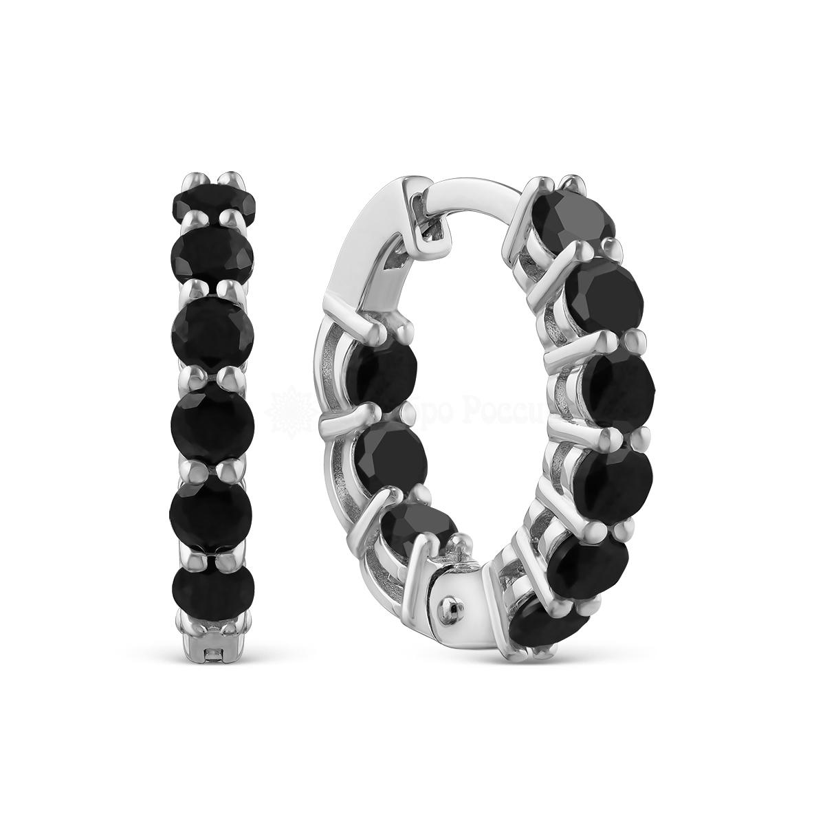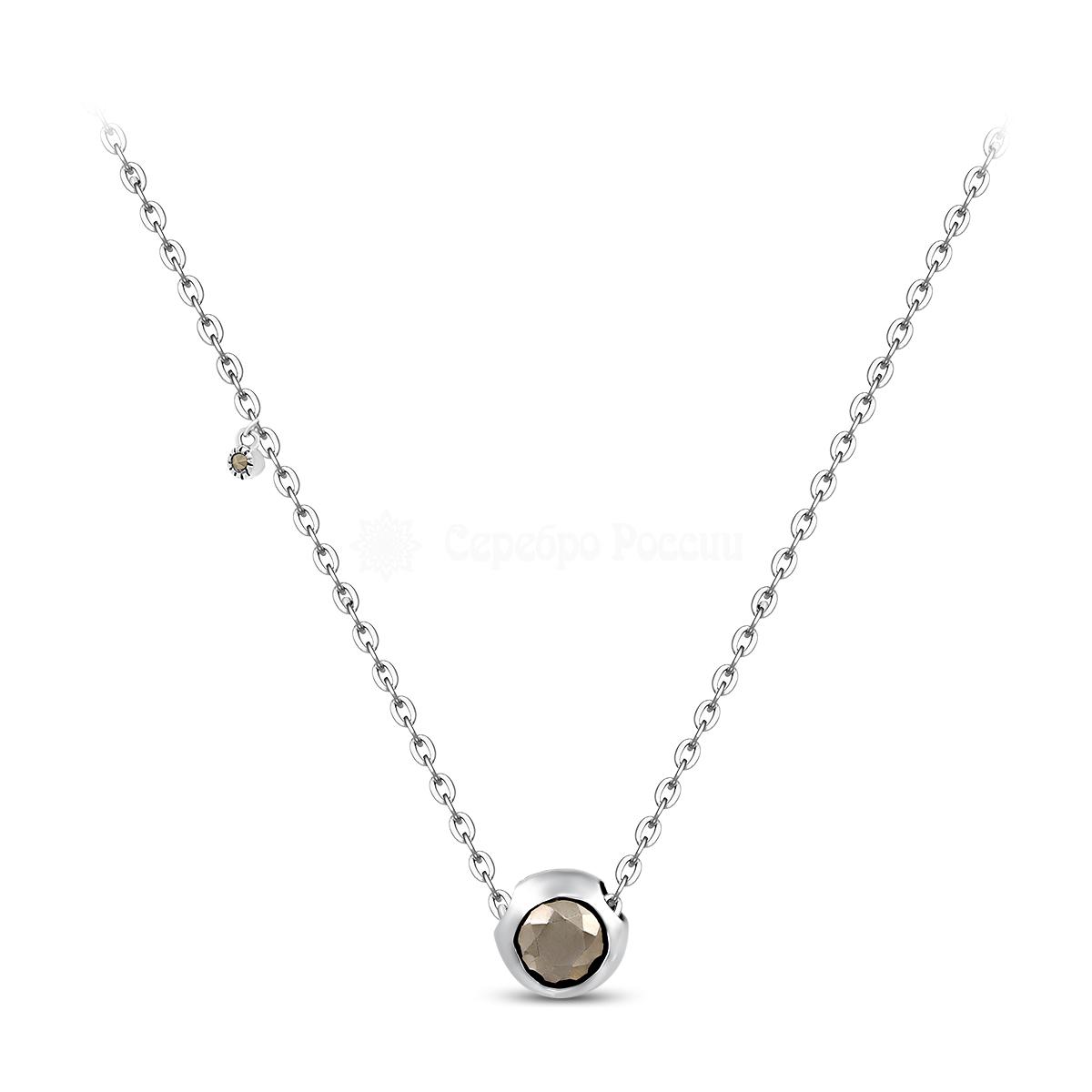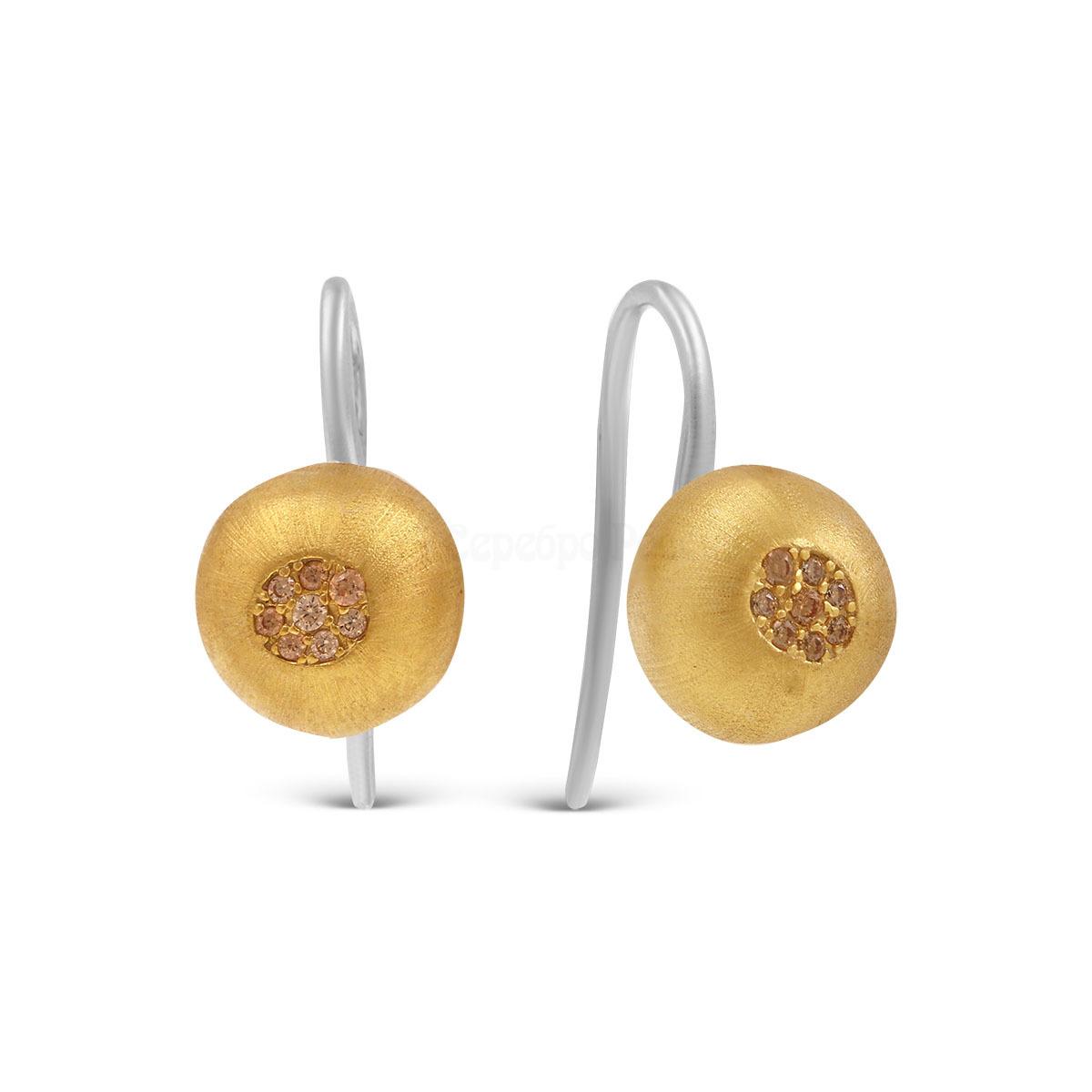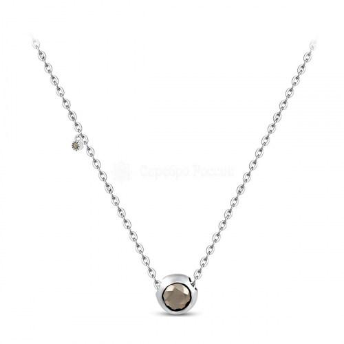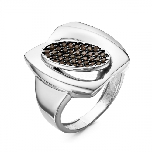 Серьги из серебра с пл.кварцем цв.раухтопаз и фианитами родированные