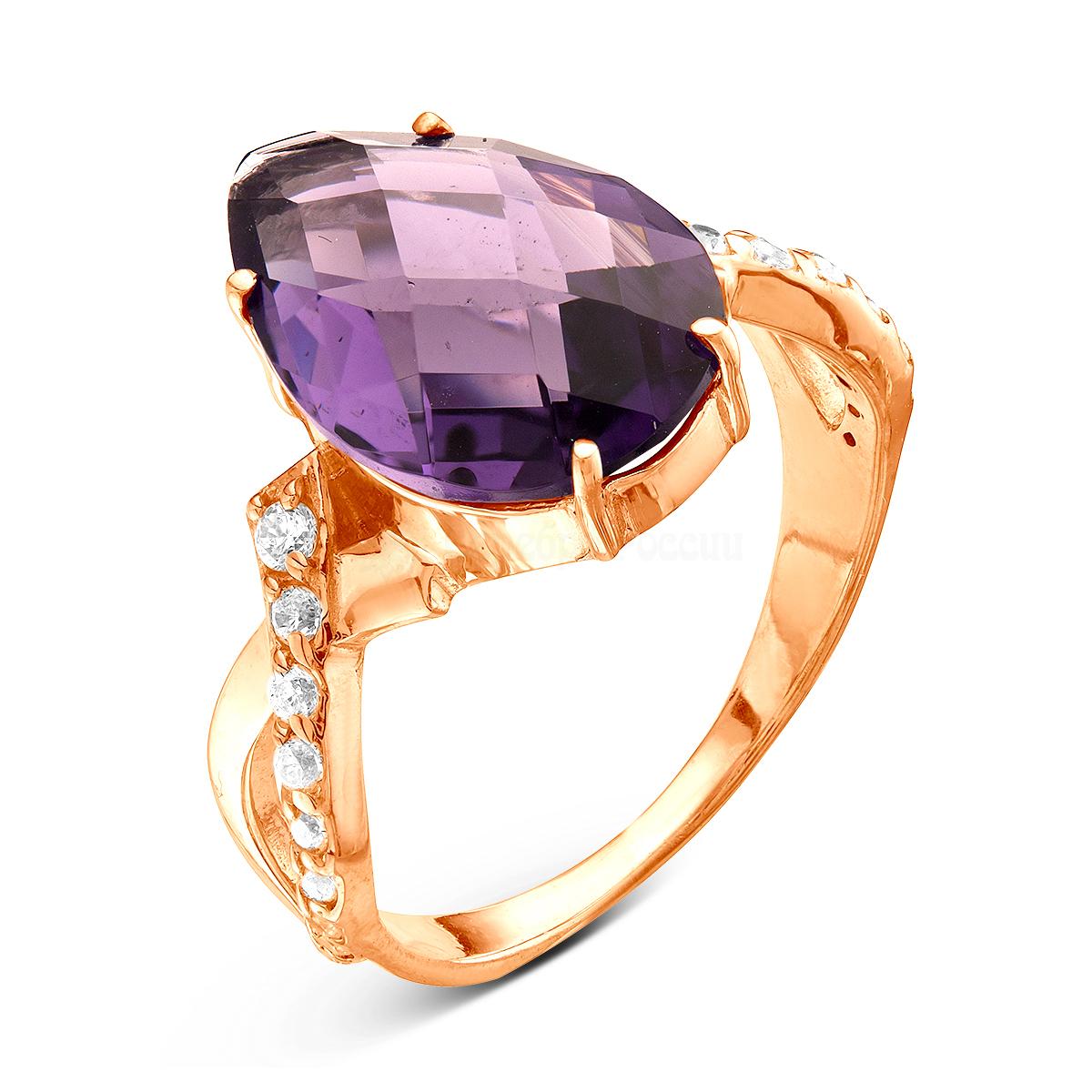 Кольцо из золочёного серебра с гт.кварцем цв.аметист и цирконами
