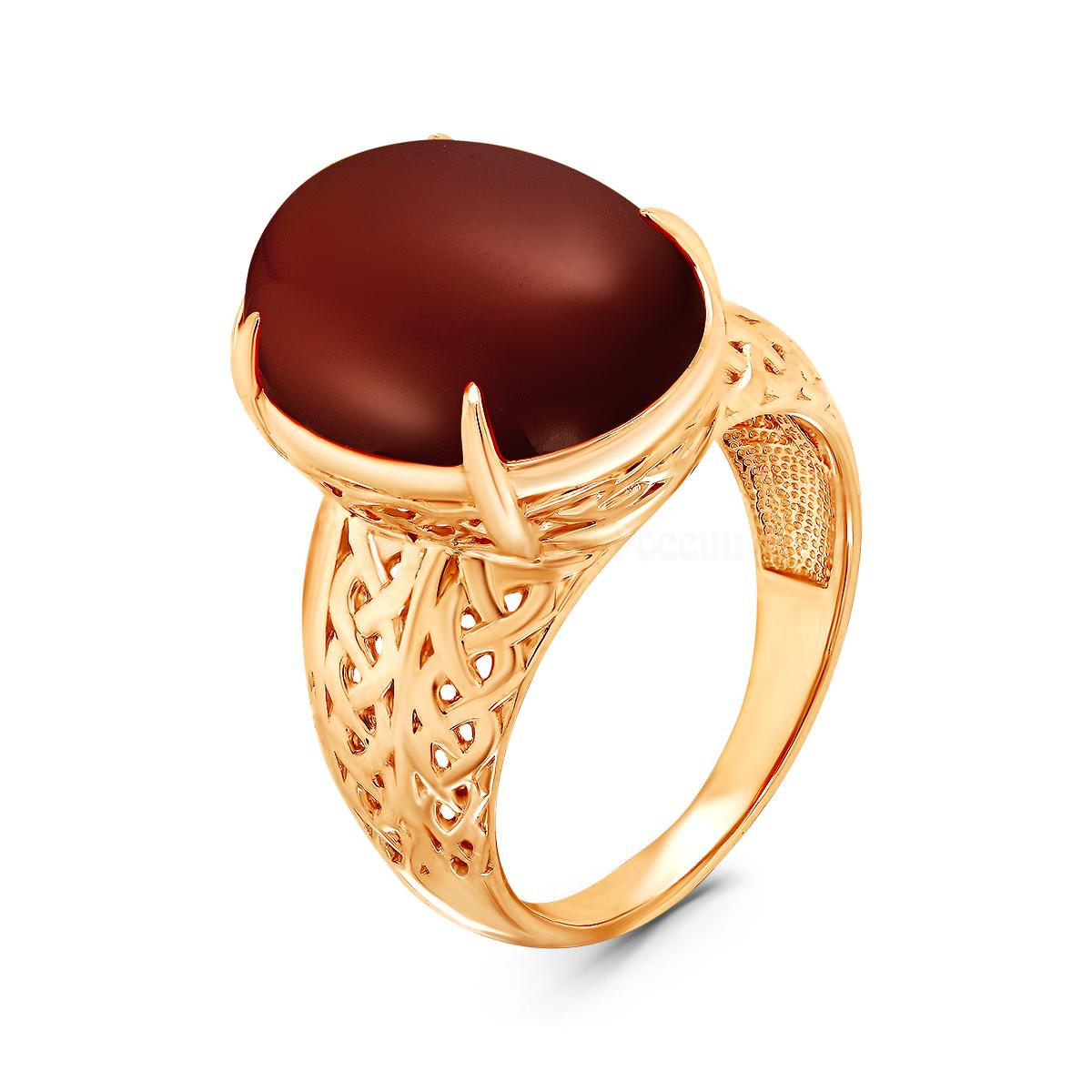 Кольцо из серебра с рек.кошачий глаз.цв.коричневый родированное