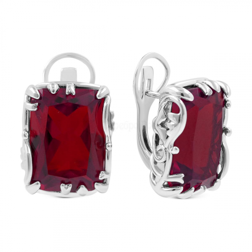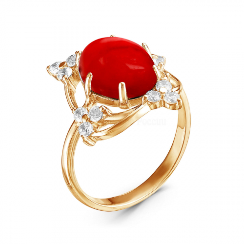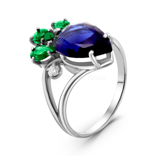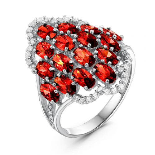Кольцо из серебра с пл.кварцем цв.гранат и фианитами родированное