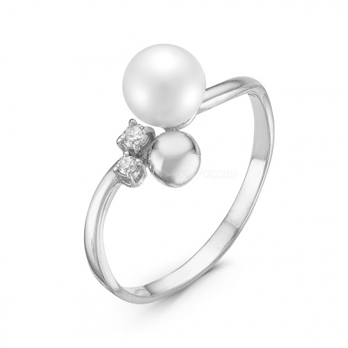 Кольцо из серебра с культ. жемчугом и фианитами родированное