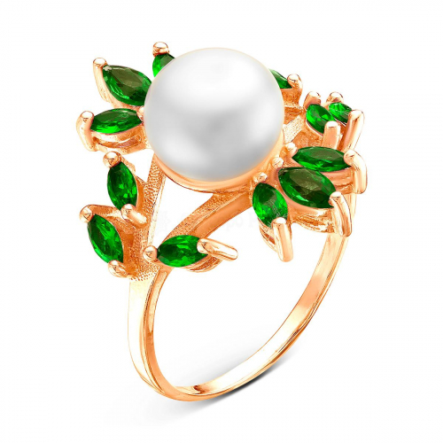 Кольцо из золочёного серебра с жемчугом и нано изумрудом